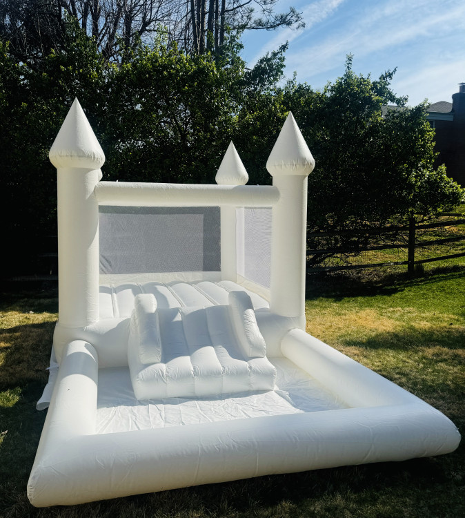 Looking for a unique and stylish inflatable for your event? Our Mini White Moon Bounce is the perfect touch of elegance and fun! Ideal for birthdays, weddings, baby showers, and more, this sleek and modern bounce house adds a sophisticated vibe while keeping guests entertained.