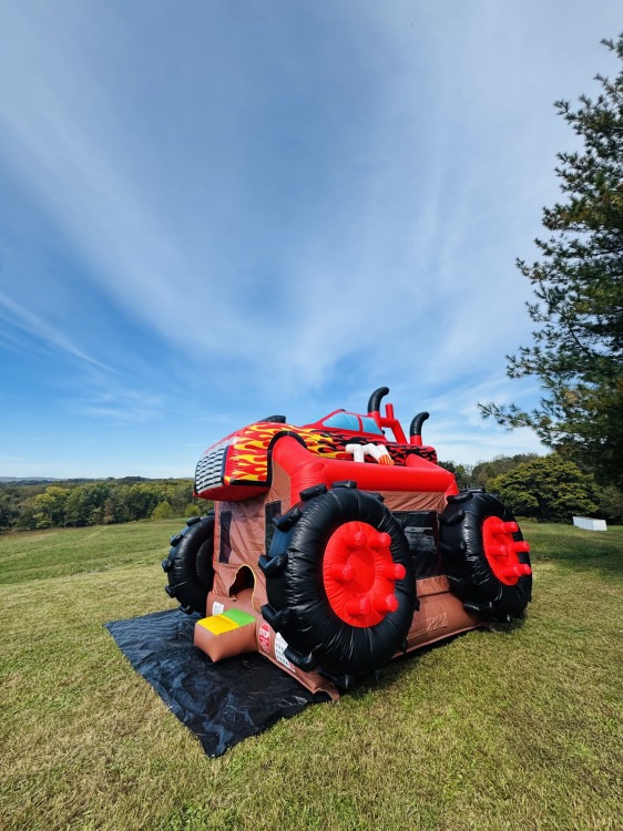 The 3-D monster truck bouncer, will definitely be the center of attraction. This inflatable is massive and perfect for boys (and girls) of all ages, including adults. The bigger, the better, and that is why this unit is great for any transportation themed party, such as Hot Wheels or Monster Jam!