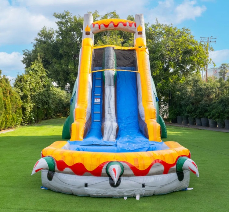Bring some excitement to your next party with the T. rex water slide. This fun rental is a great choice for birthdays, backyard parties, and summer events. Kids will love climbing up and sliding down into the splash pool while enjoying the bold dinosaur theme. It adds a playful, high-energy touch to any celebration and is a great way to keep guests entertained on a hot day.